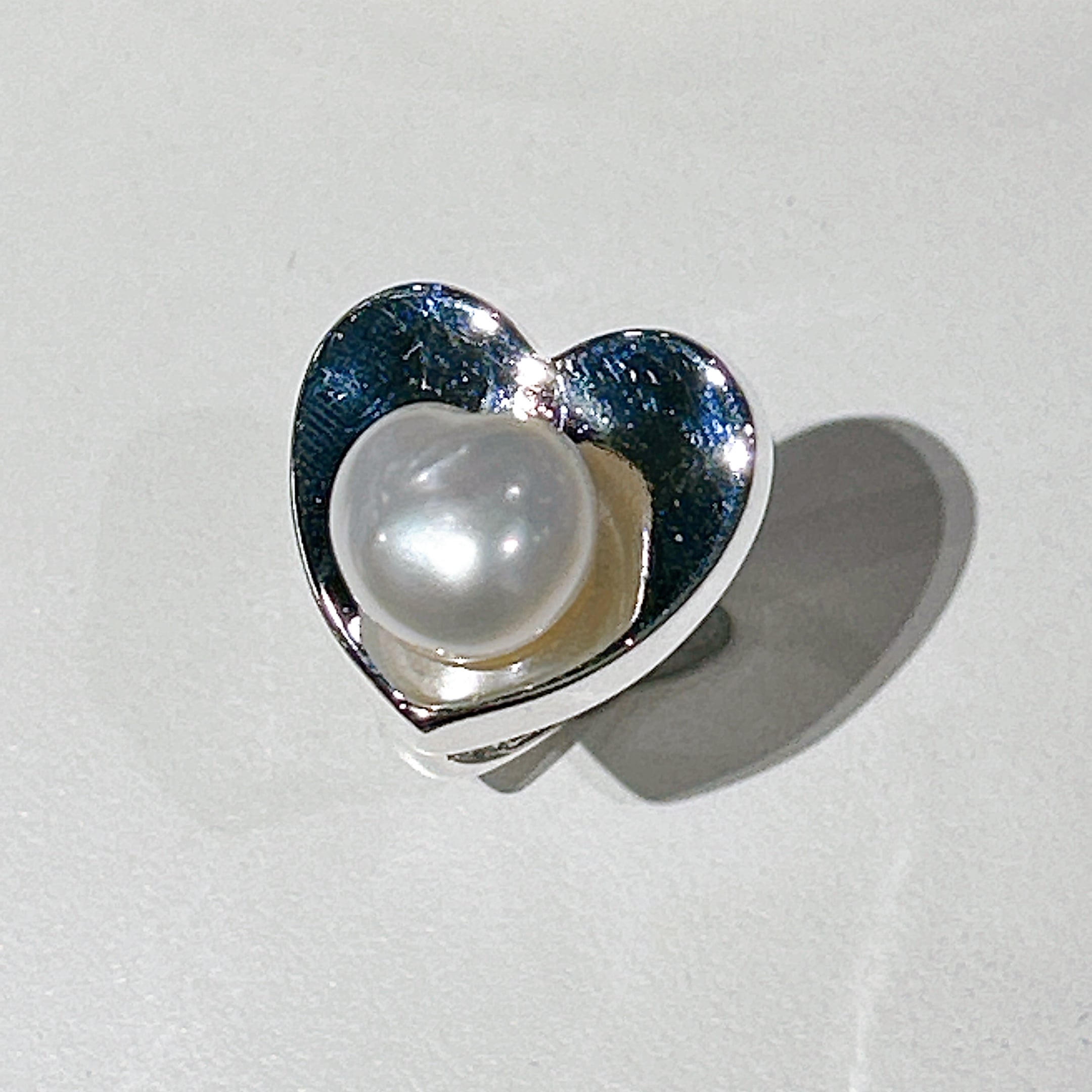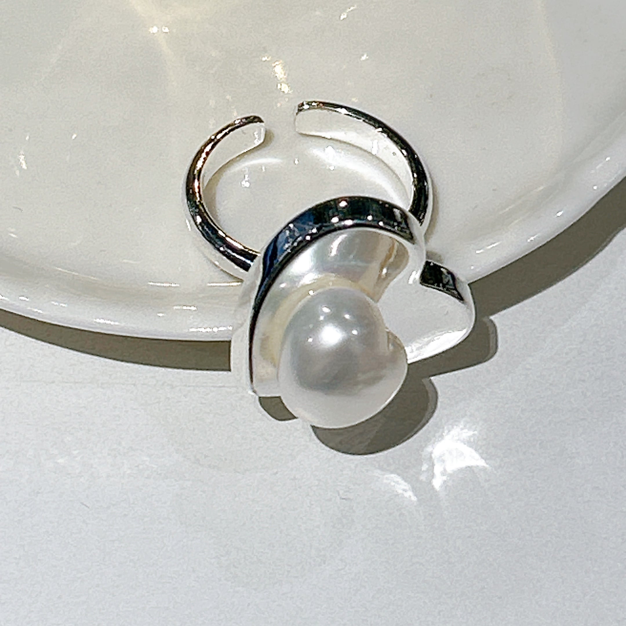 【🆕】巴洛克銀色心型開口戒指・Pearl Ring(5)